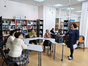 Сегодня в нашей библиотеке прошла интеллектуальная встреча клубного объединения «Хорошее настроение». Она прошла в формате легендарной игры «Что? Где? Когда?». «Поэтическая акварель» — так называлась игра, посвященная Международному дню поэзии. Наши прекрасные участницы сразились с великими поэтами России и зарубежья. Вопросы были совсем непростыми, но наши дамы проявили себя как настоящие знатоки! Счёт в конце игры 11:1 в пользу игроков!