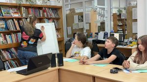 Недавно в Детской библиотеке состоялась первая встреча-знакомство в студии «Юный подкастер». Участники, которые записались в студию, познакомились с понятием «подкаст», с особенностями его создания. Для всех участников прошёл трёхминутный «Мозговой штурм», во время которого они моментально накидали много интересных тем для подкастов.