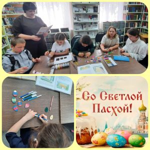 Пасха – светлый и вдохновляющий праздник, который ежегодно объединяет сотни людей по всему миру. Ароматные куличи, крашеные яйца, весеннее солнце и древние традиции делают Пасху одним из самых замечательных семейных праздников. В Южной сельской библиотеке-филиале №12 в канун праздника прошел литературно-познавательный час «Светлая Пасха». Вначале встречи мы читали красивые пасхальные стихи, говорили об истории и традициях празднования Пасхи. Ребята узнали, почему принято дарить крашеные яйца, что символизирует кулич и как в старину готовились к этому дню в каждой семье. На творческой части мероприятия участники рисовали яркие пасхальные рисунки и со старанием раскрашивали деревянные заготовки пасхальных яичек. Каждый узор получился неповторимым и домой ребята уходили с маленькими шедеврами, созданными своими руками. Пусть этот светлый праздник принесет в каждый дом мир и добро!