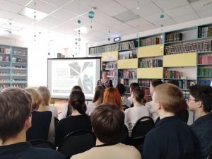 Ведущая — библиограф МЦБ Ольга Владимировна Климачева — объяснила школьникам, что означает понятие «геноцид», рассказала о причинах его возникновения, а также о значении Дня единых действий и его роли в сохранении исторической памяти.